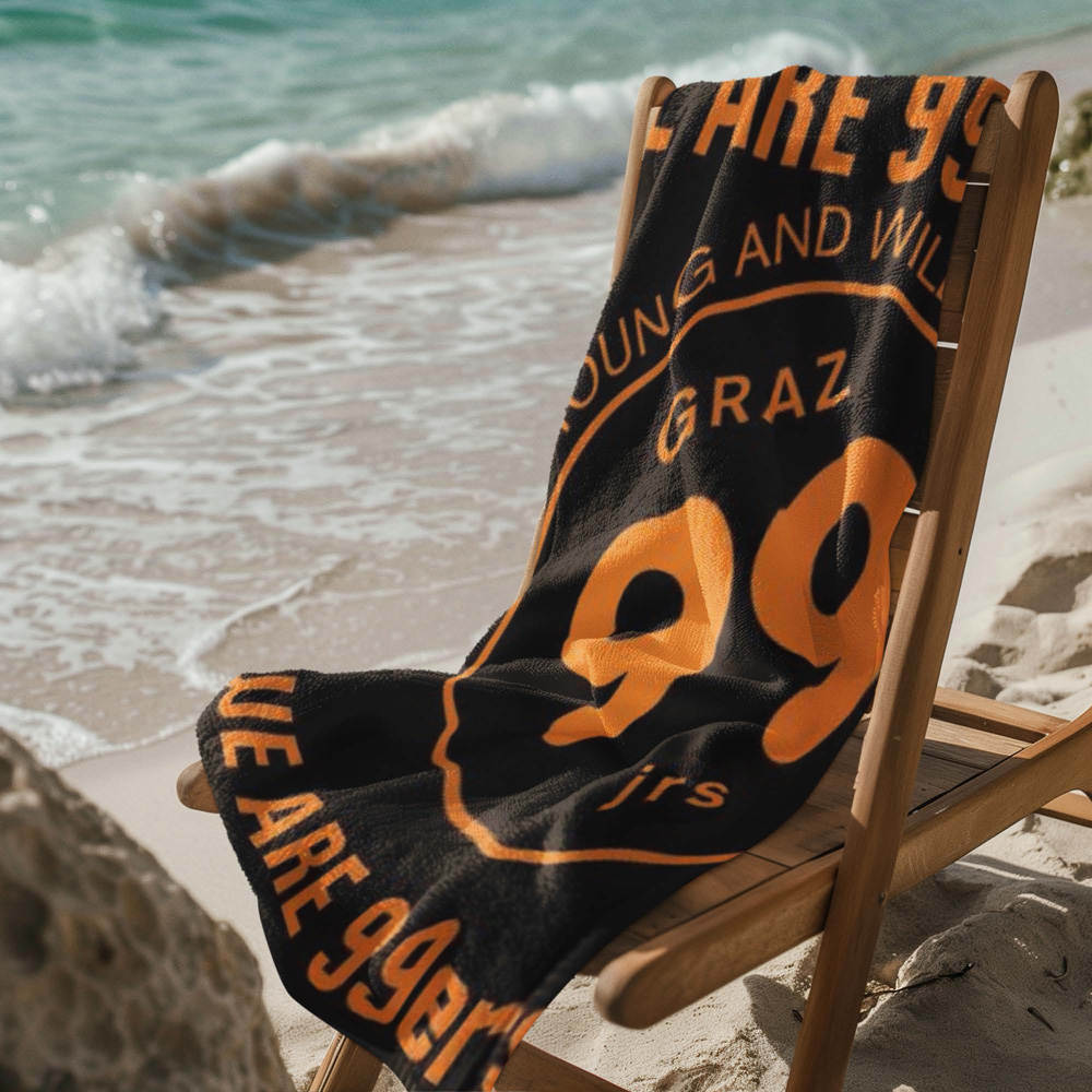 Stylisch, hochwertig und 100 % „Young and Wild“: Mit diesem exklusiven Badetuch zeigst du Flagge – ob am Pool, im Gym oder am Spielfeldrand. Das großflächige 99ers-Logo in kräftigem Orange zieht garantiert Blicke auf sich. Und das Beste: Es wird fair & nachhaltig in Österreich produziert!